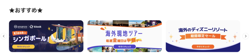 また、Klookの特設ページには、今使えるクーポンやキャンペーン情報をまとめた項目があるので、少しでもお得にしたい方はこちらもご確認ください。