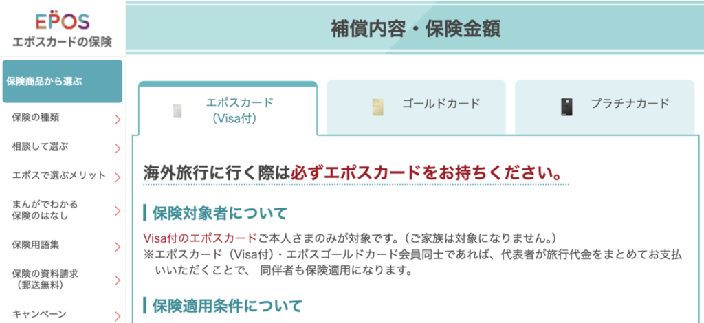 補償は利用付帯となっており、旅費や航空券などをエポスカードで支払うことで自動的に適用されます。