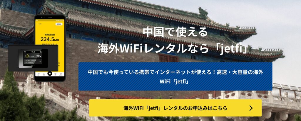 中国旅行で使えるおすすめのレンタルWiFi(VPN付き)5つ目は「jetfi」です。