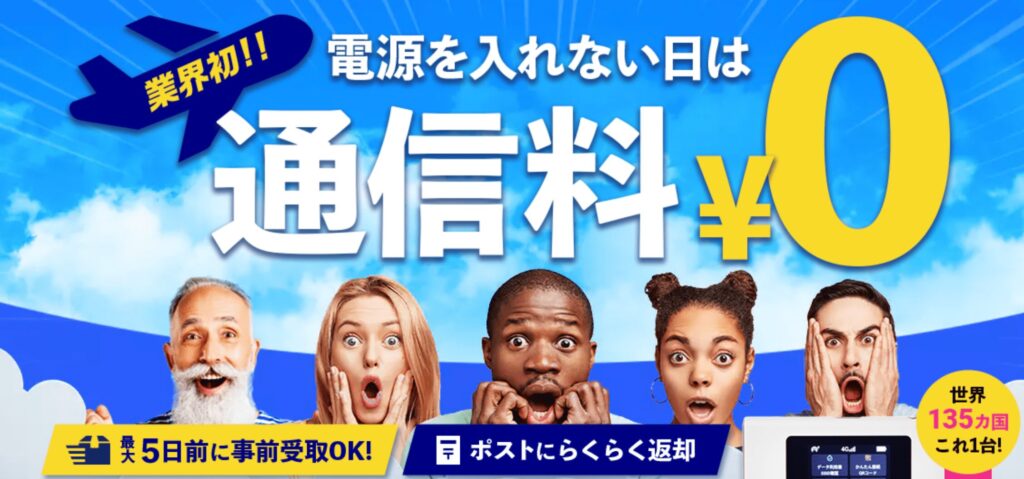 海外WiFiレンタルショップは、業界初の電源を入れない日は通信量0円という新制度を導入して人気を高めているレンタルWiFiサービスです。