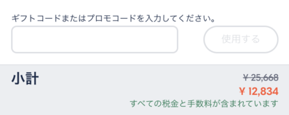 アクティベティという項目で、ギフトコードまたはプロモコードを入力してくださいと表示されるので、そちらに配布されたクーポンコードを入力して、使用するをクリック