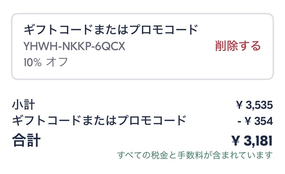 たったこれだけの作業で、10%割引クーポンが反映されます。