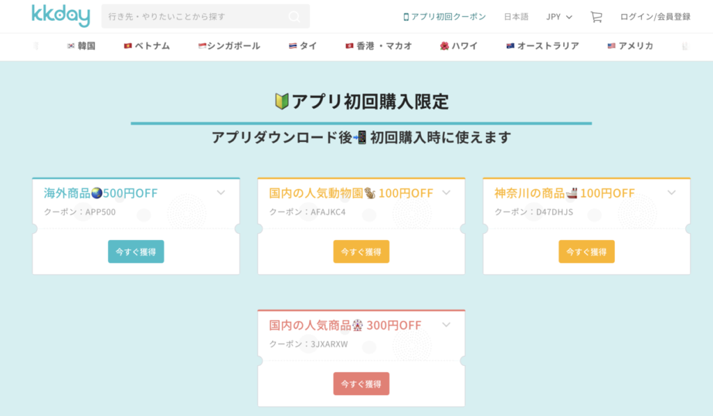 KKdayの初回クーポンは専用ページでクーポンを取得する必要があります。