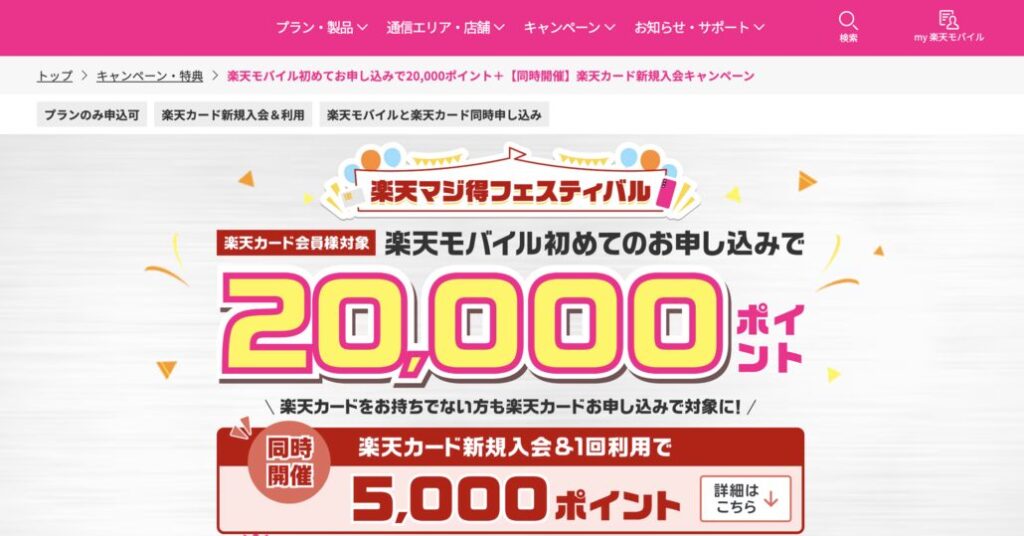 今だと、楽天モバイルと一緒に楽天カードを作成すると、25000ポイント貰えるキャンペーンを実施しているので、興味がある方はぜひ下記の詳細ページをご覧ください。