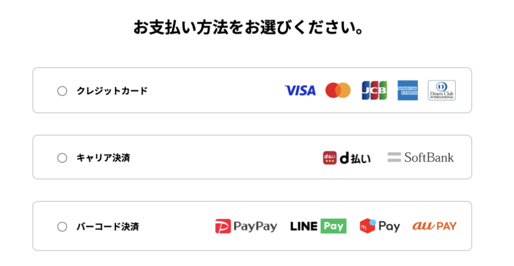 正しく入力できているのを確認できましたら、【お支払い方法を選択する】ボタンをタップ
