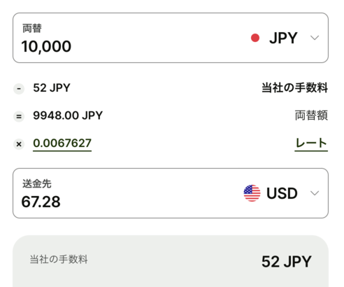 為替レートもリアルタイムの中間市場レートが適用されるため、他のサービスに比べて為替差損が少なく、非常に透明性が高いという魅力があります。